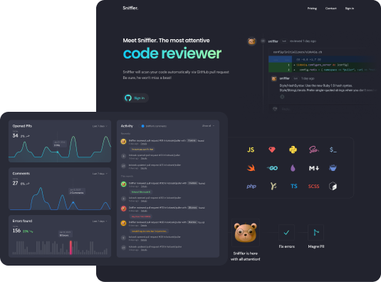 When a GitHub pull request is opened or updated Sniffler simply integrates with your workflow